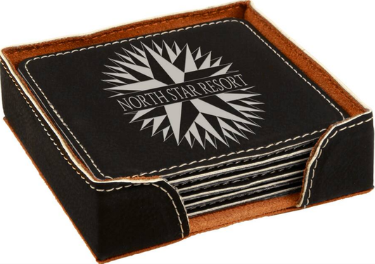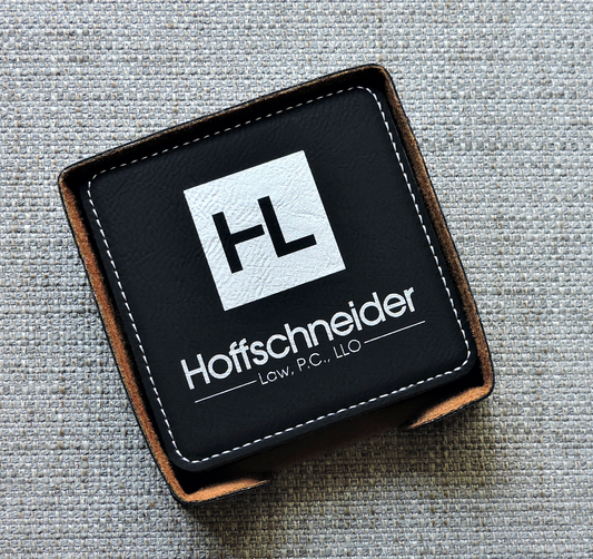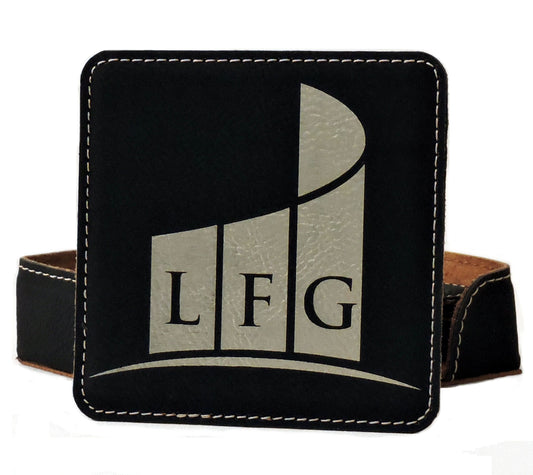 Black Leather Drink Coasters with Business Logo, Coasters with Logo, Custom Business Logo Drink Coasters, Laser etched Logo
