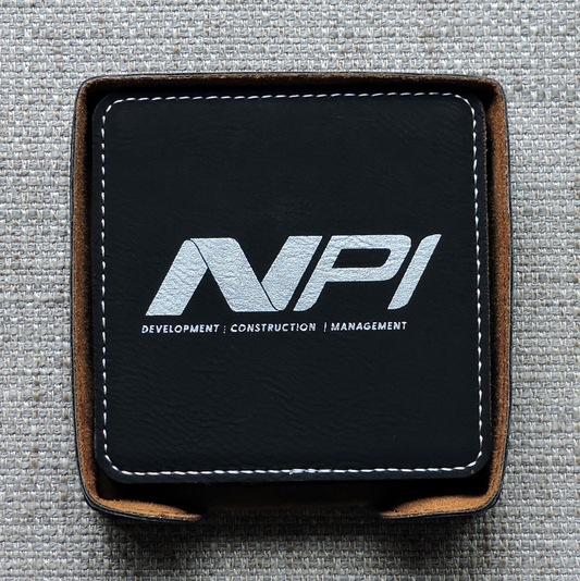 Gray Leather drink Coasters wtih Logo monogram, custom set of coasters with logo laser printed/engraved/personalized