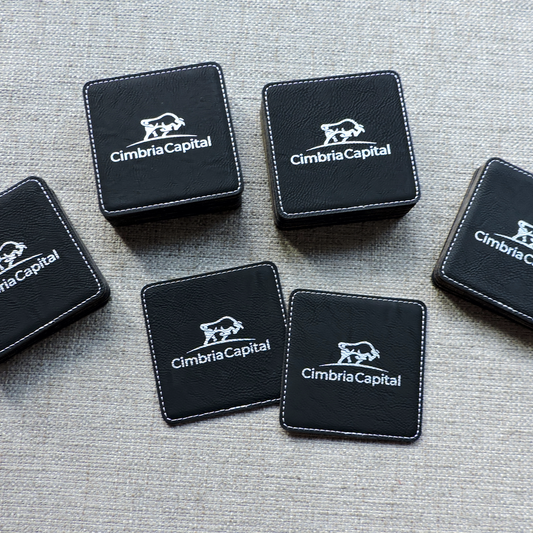 Brown Coasters wtih Logo, custom set of coasters with logo laser printed/engraved/personalized